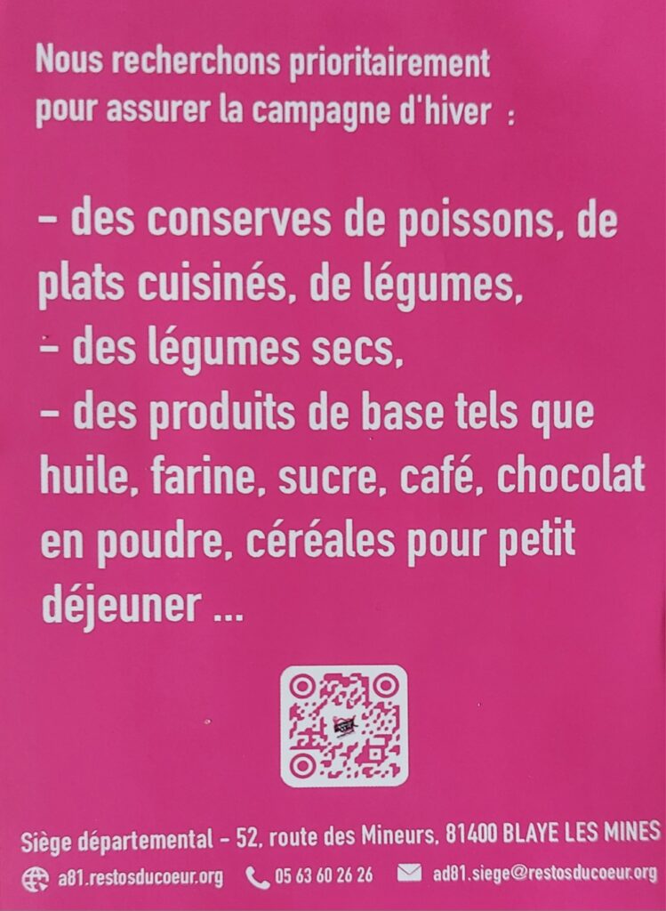 Pour assurer la campagne d’hiver les restos du cœur ont besoin de produits alimentaires de base